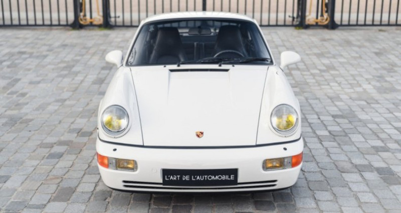 options ============== c05 version france 425 essuie-glace arrière 659 ordinateur de bord 573 climatisation automatique 220 différentiel à glissement limité informations ============== troisième main matching numbers origine centre porsche lyon dans la même famille jusqu'en 2020 tout juste révisée chez un spécialiste parisien première peinture intégrale hormis les capots (qui sont matching) dossier avec bon de commande, facture d'achat, première carte grisesuivi et entretien :le 05/10/1990 - livraison par le centre porsche lyon le 14/11/1990 à 8 926 kms par le centre porsche lyon le 09/10/1992 à 19 765 kms par universal cars à lyon le 19/01/1996 à 40 718 kms par patrick automobiles à lyon le 12/01/2002 à 56 504 kms par patrick automobiles à lyon le 17/08/2010 à 61 308 kms par le garage du mont d'or à saint-romain-au-mont-d'or le 31/12/2020 à 74 897 kms par gtsport à limas le 16/01/2023 à 77 315 kms par bymycar orange le 16/03/2026 à 80 025 kms par 911 montmartre à parisla splendide porsche 964 carrera 2 que nous proposons a été livrée neuve par le centre porsche lyon et est restée entre les mains de la même famille de 1990 à 2020, elle a connu au total seulement trois propriétaires ! reconnaissable aux superbes phares jaunes, cette 964 française n'affiche aujourd'hui que 80 050 kms et se présente dans un état exceptionnel, elle est matching numbers. peinte en blanc grand prix avec l'intérieur en cuir noir et les inserts en tissu sur les sièges, elle se présente en première peinture intégrale à l'exception des capots qui sont tout de même matching. l'auto est très bien équipée avec l'ordinateur de bord, la climatisation et le différentiel à glissement limité. bénéficiant d'un suivi important et de qualité, elle est en parfait état de fonctionnement et vient d'être révisée par un spécialiste porsche parisien. désirable boîte manuelle, c'est là l'opportunité rare d'acquérir un superbe exemplaire de la 964 carrera 2. elle vient bien entendu avec son carnet et nous disposons de documents historiques importants dont le bon de commande, sa facture d'achat et sa première carte grise.présentée en août 1989, la nouvelle 964 vient perpétuer l’éternelle histoire de la porsche 911. grâce à sa ligne très réussie, la porsche 964 devient ainsi le modèle emblématique de la firme de stuttgart à la fin des années 80. composée à 85 % de nouvelles pièces, elle conserve en grande partie les formes classiques de sa devancière, avec des traits plus voluptueux. disponible dans de multiples versions coupé, targa et cabriolet, en deux et quatre roues motrices, ce fut évidemment un succès commercial pour la marque.le moteur atmosphérique de la carrera 2 développe 250 chevaux, couplé au poids annoncé de 1350 kg, cela promettait des performances très respectables pour l'époque, avec notamment une vitesse de pointe annoncée à 260 km/h. les 100 km/h sont atteints en 5,7 secondes. le flat 6 refroidi par air conserve également ses deux soupapes par cylindre. informations in englishthird hand matching numbers delivered by porsche centre lyon just serviced by a parisian specialist owned by the same family until 2020 first paint except for the hoods (which are matching) purchase order, purchase invoice, first registration documentservice history:on 10/05/1990 - delivered by porsche centre lyon on 11/14/1990 at 8,926 km by porsche centre lyon on 10/09/1992 at 19,765 km by universal cars in lyon on 01/19/1996 at 40,718 km by patrick automobiles in lyon on 01/12/2002 at 56,504 km by patrick automobiles in lyon on 08/17/2010 at 61,308 km by garage du mont d'or in saint-romain-au-mont-d'or on 12/31/2020 at 74,897 km by gtsport in limas on 01/16/2023 at 77,315 km by bymycar orange on 03/16/2026 at 80,025 km by 911 montmartre in paristhe splendid porsche 964 carrera 2 we are offering was delivered new by porsche centre lyon and remained in the same family from 1990 to 2020, having had only three owners in total! recognizable by its superb yellow headlights, this french-market 964 now shows only 80,050 km and is presented in exceptional condition. it is matching numbers. finished in grand prix white with a black leather interior and fabric seat inserts, it is presented in its first paint with the exception of the hoods, which are still matching.the car is very well equipped with the onboard computer, air conditioning, and limited-slip differential. benefiting from extensive and high-quality maintenance, it is in perfect running condition and has just been serviced by a porsche specialist in paris. featuring the desirable manual gearbox, this is a rare opportunity to acquire a superb example of the 964 carrera 2. it naturally comes with its service book, and we also have important historical documents including the purchase order, original invoice, and first registration document.presented in august 1989, the new 964 perpetuates the timeless story of the porsche 911. thanks to its highly successful design, the porsche 964 became the emblematic model of the stuttgart firm at the end of the 1980s. composed of 85% new parts, it largely retained the classic shape of its predecessor, with more rounded lines. available in multiple versions, coupé, targa, and cabriolet, with both two- and four-wheel drive, it was of course a commercial success for the brand.the naturally aspirated carrera 2 engine produces 250 horsepower, and combined with a stated weight of 1,350 kg, it offered very respectable performance for the time, including a top speed of 160 mph. the car reaches 60 mph in 5.7 seconds. the air-cooled flat-six engine also retains its two valves per cylinder.
